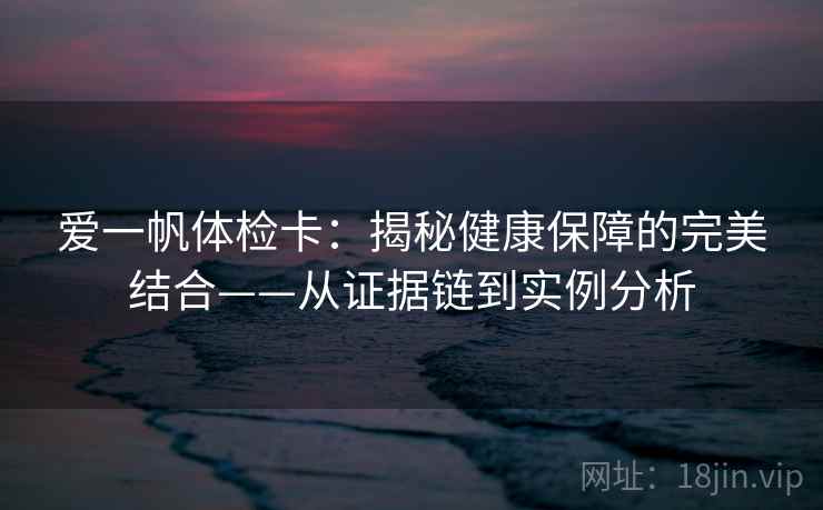 选择爱一帆体检卡,不仅是选择一次体检,更是选择一种全面、科学的健康管理方式。通过完备的证据链和实例标注,我们为您提供无缺漏的健康保障,帮助您发现健康问题,并通过专业指导实现长期健康管理。让我们一起,关注自己的健康,拥抱更美好的生活!